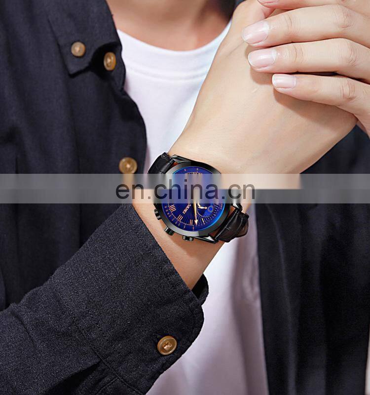 OEM Custom Logo Men Wristwatch Brand Skmei 1510 Japan Movement Waterproof Genuine Black Leather Quartz Watch