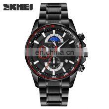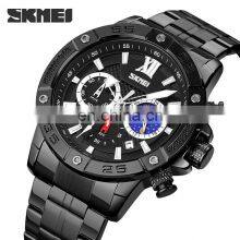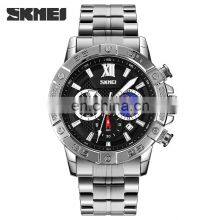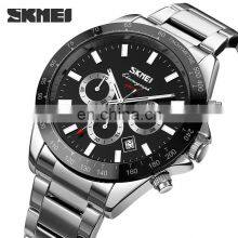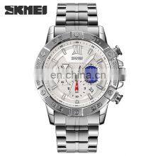 SKMEI Choronograph Silver Watch Men Stainless Steel Reloj de Cuarzo Para Hombre Luxury Wristwatch Small Dial Quartz Wirstwatch
