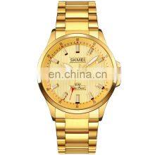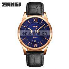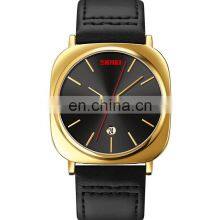 9073 Gold Skmei Quartz Watch Leather Custom Logo Wristwatch Wholesaler Elegante Luxury 30m Waterproof Business Watch for Men