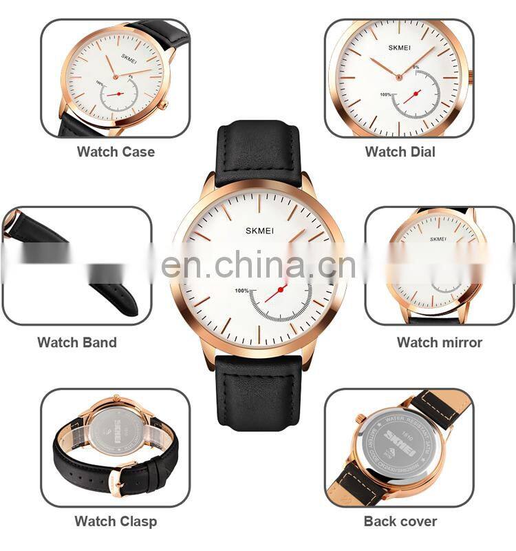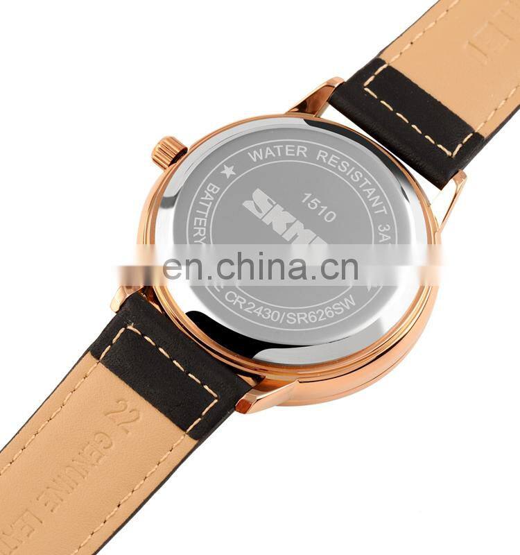 OEM Custom Logo Men Wristwatch Brand Skmei 1510 Japan Movement Waterproof Genuine Black Leather Quartz Watch