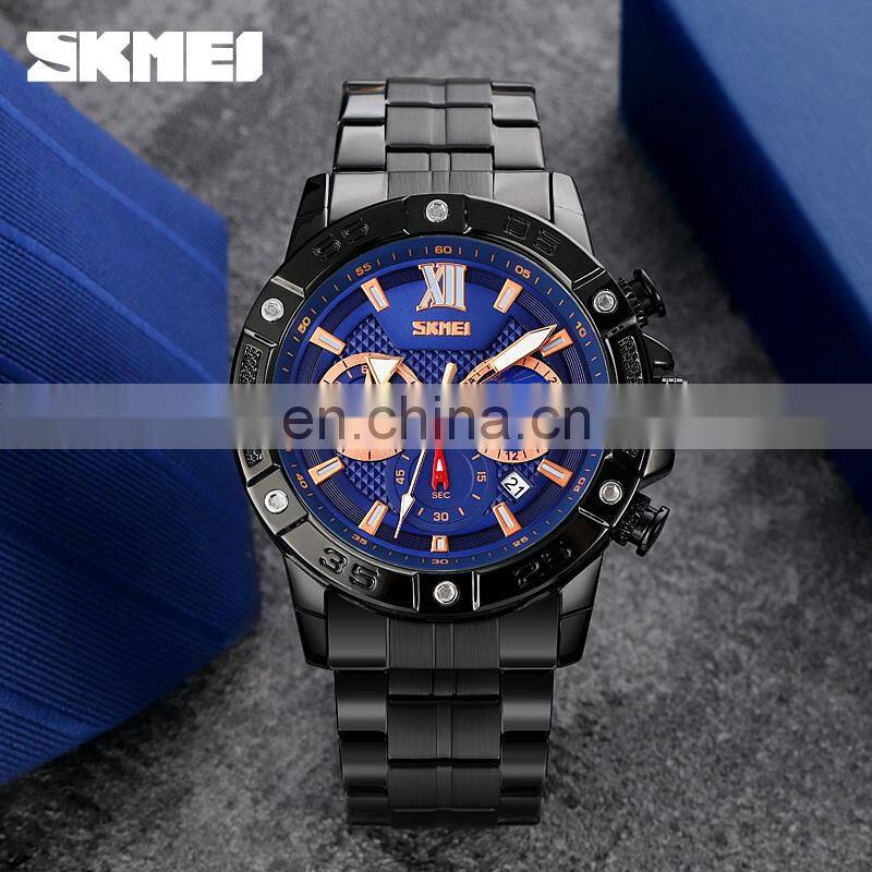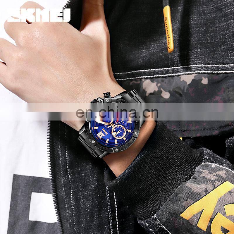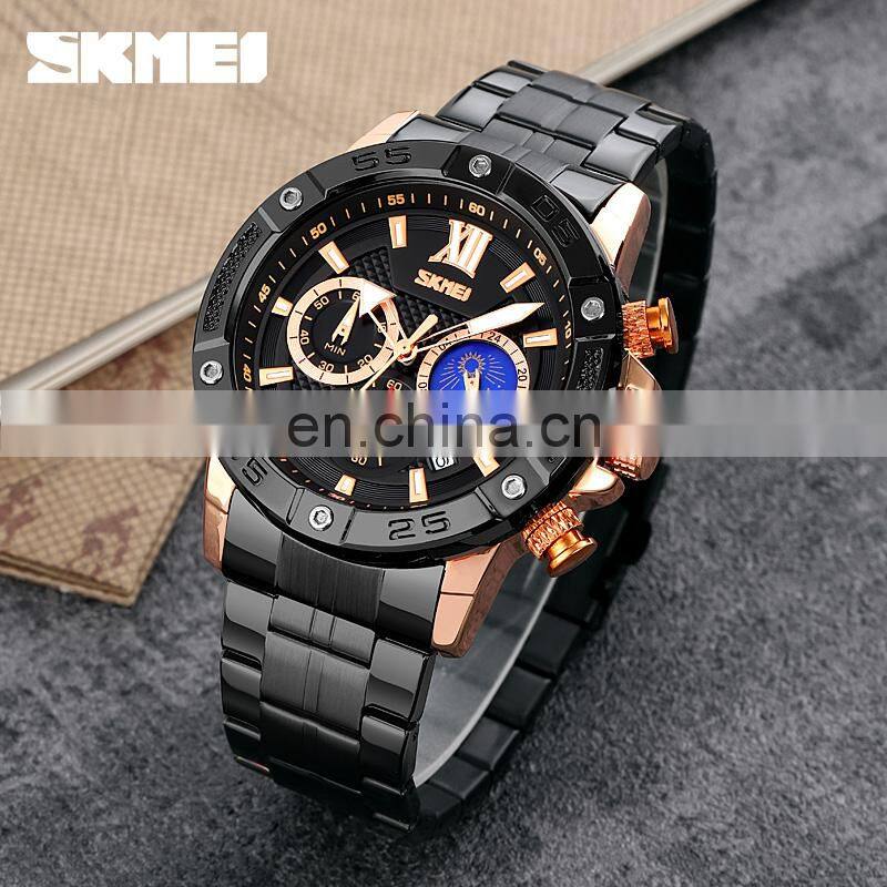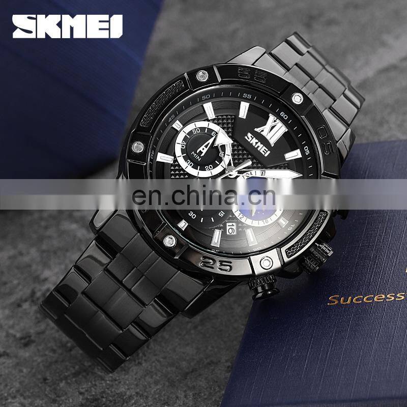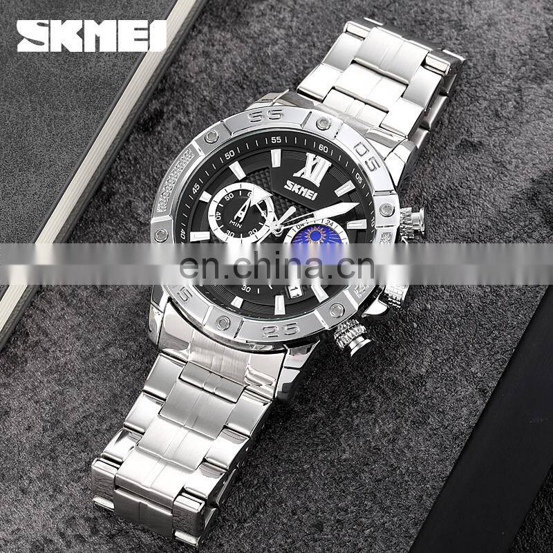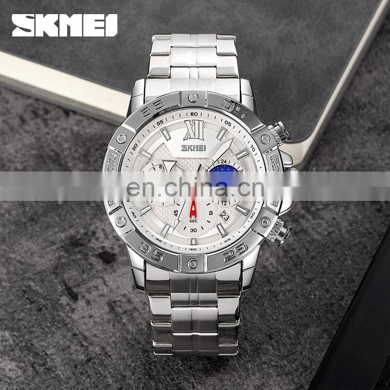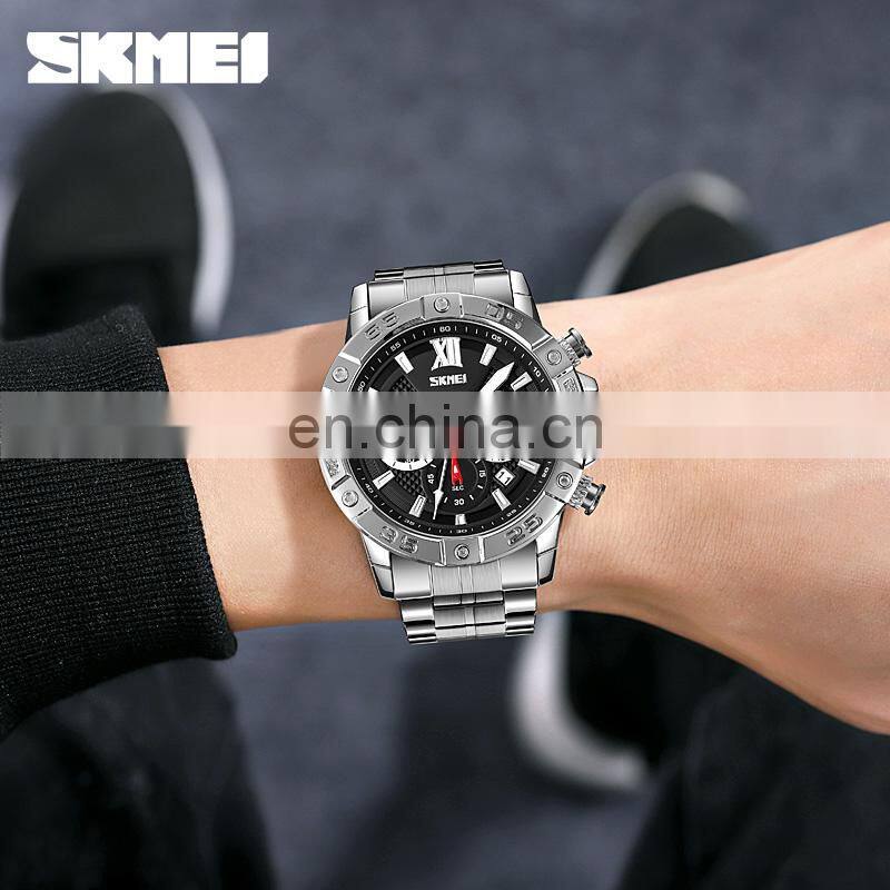 SKMEI Choronograph Silver Watch Men Stainless Steel Reloj de Cuarzo Para Hombre Luxury Wristwatch Small Dial Quartz Wirstwatch