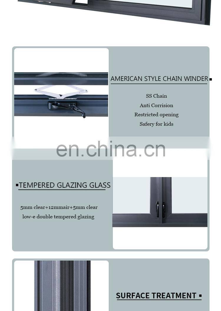 USA Certified Energy-Saving Aluminum Awing Window Casement Window With Blinds Inside Grill Design Double Pane Aluminum Window