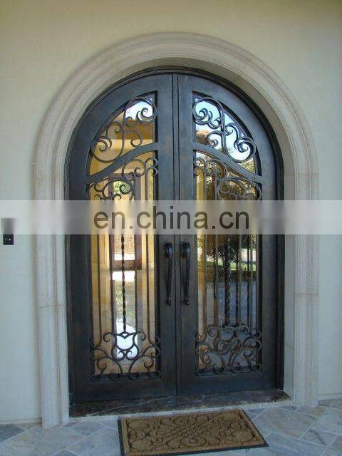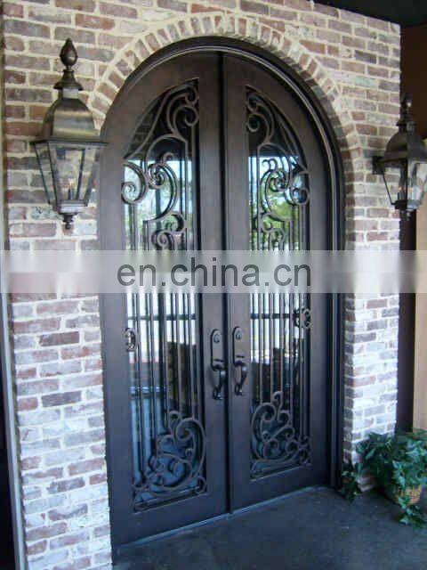 Apartment Exterior Arch Design Double Entry Wrought Iron Door