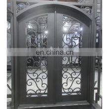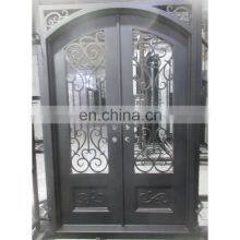 Black Strong Steel Exterior French Door Residential Double Arch Wrought Iron Decorative Front Door