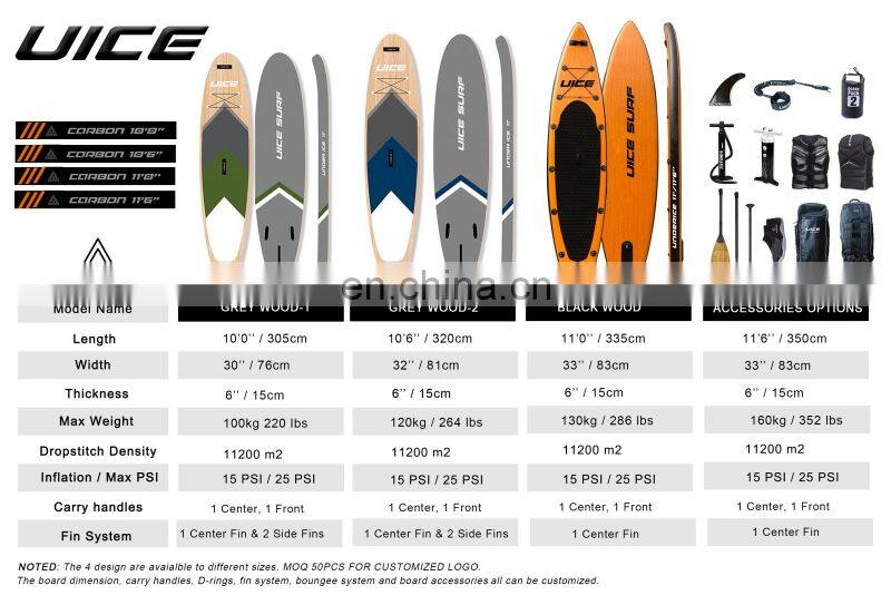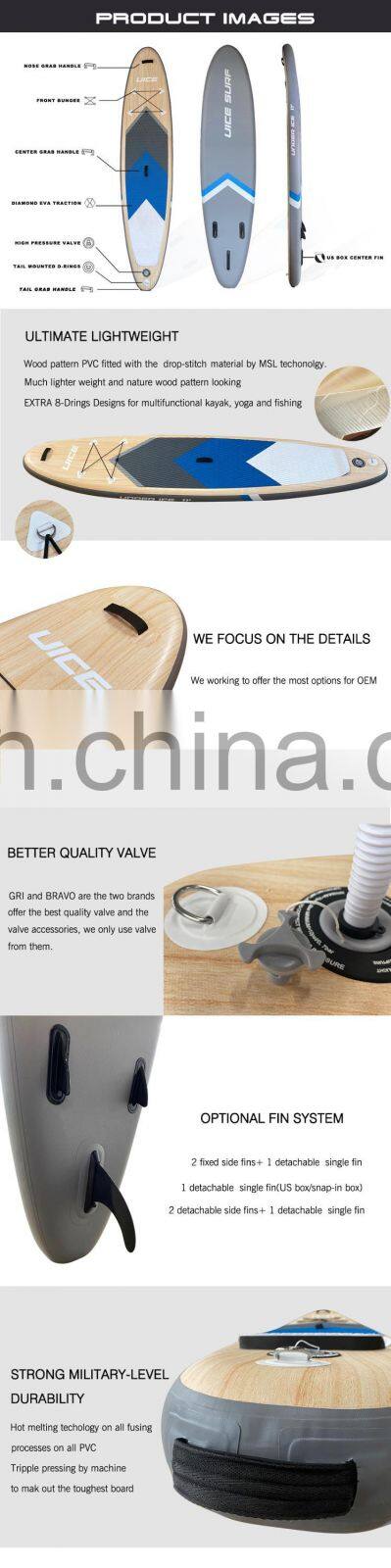 UICE Triple Layer Strongest Wood Design Inflatable Sup Stand Up Paddle Board ISUP Air Board Support Custom