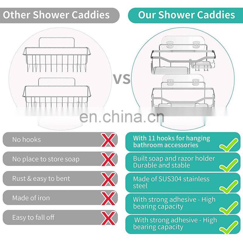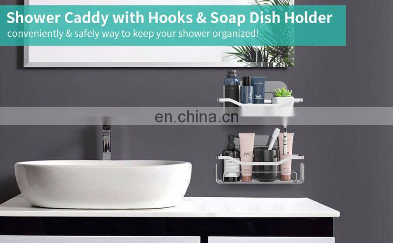 In Stock Shower Caddy With Hooks Wall Mount Waterproof Bathroom Accessory Rack