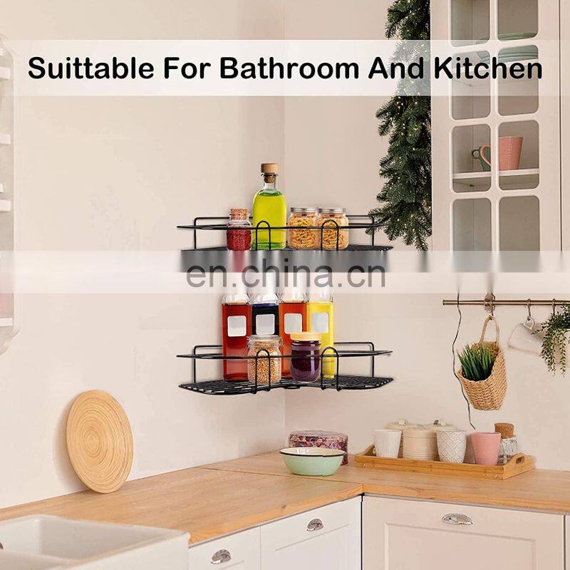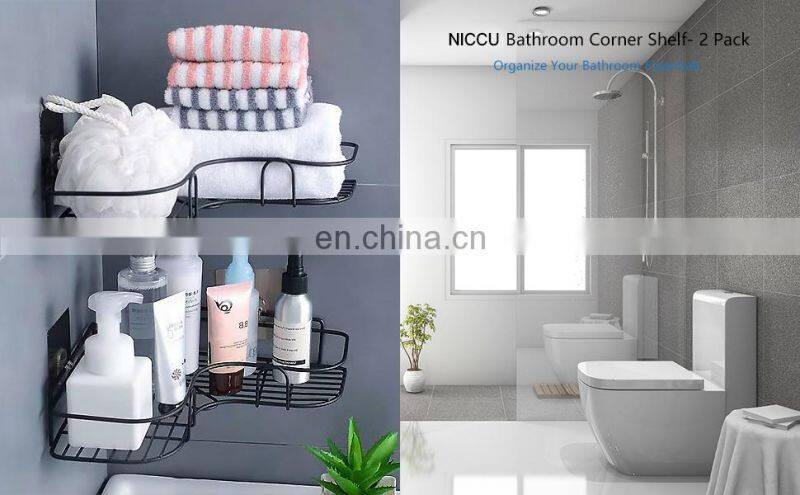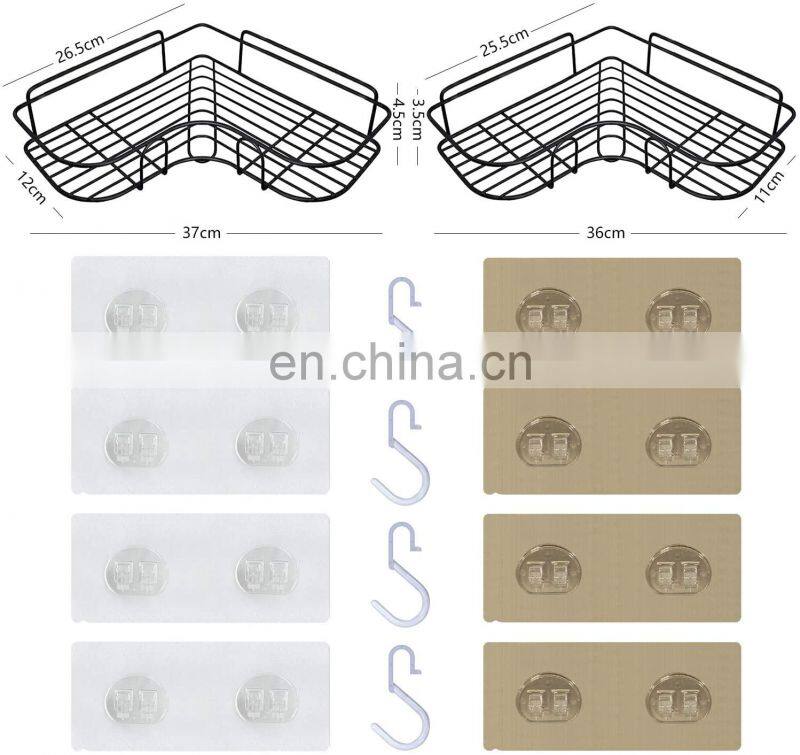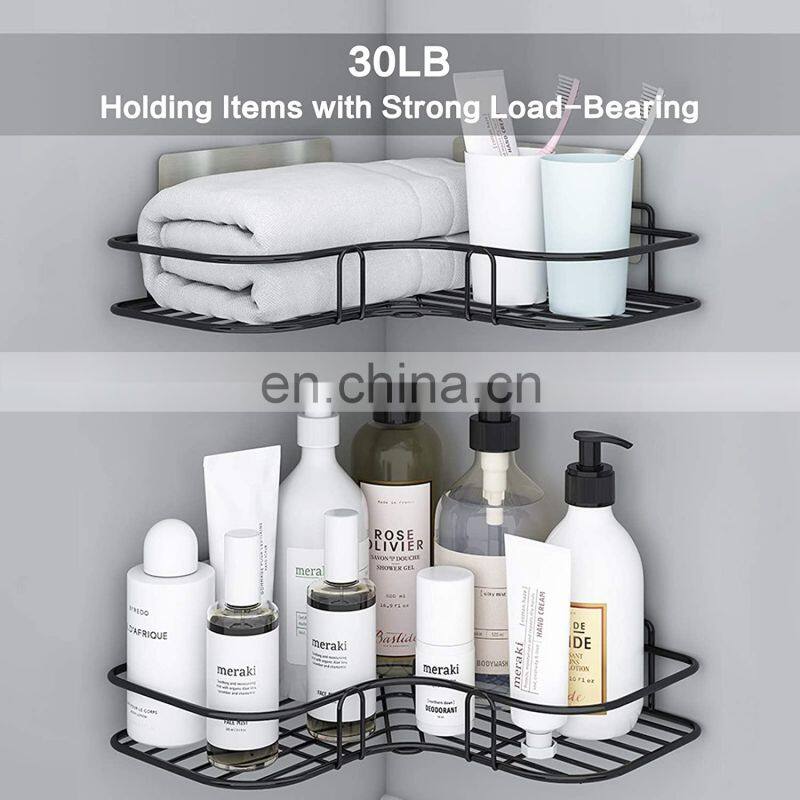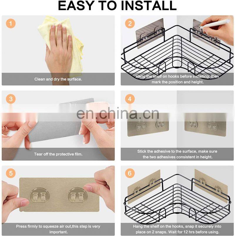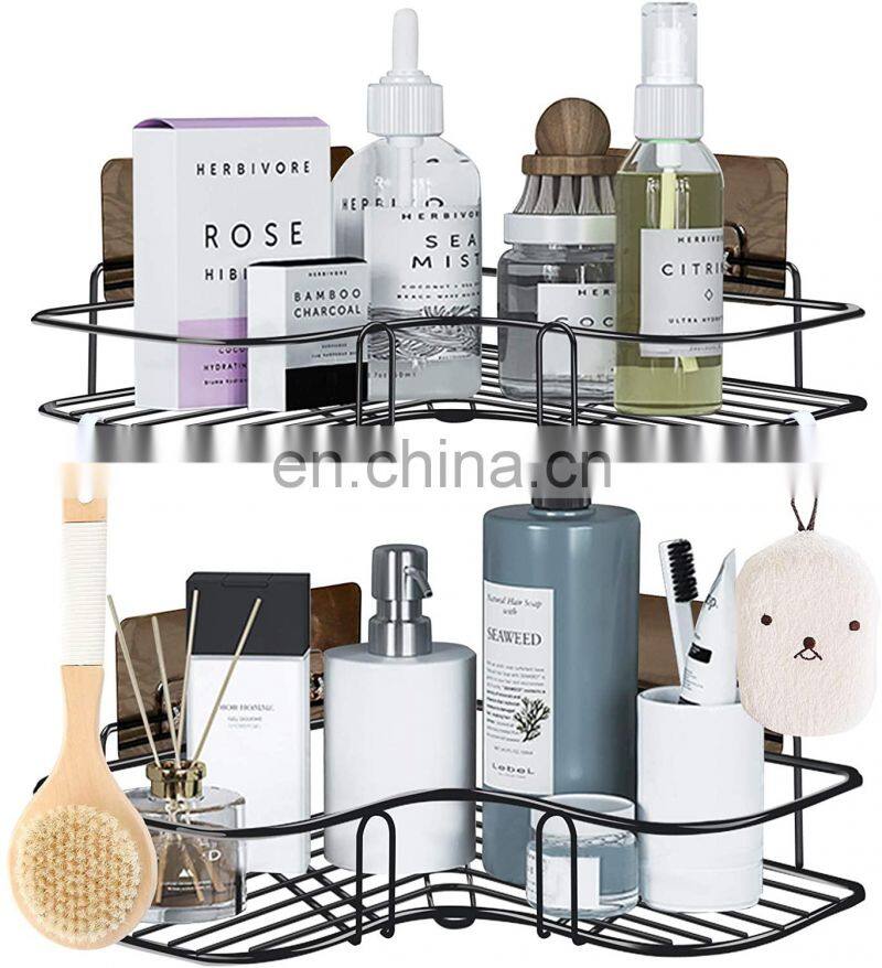 Hot Selling No Drilling Wall Mount Corner Bathroom Shelves Organizer Adhesive Shower Shelf With Hooks Shelf