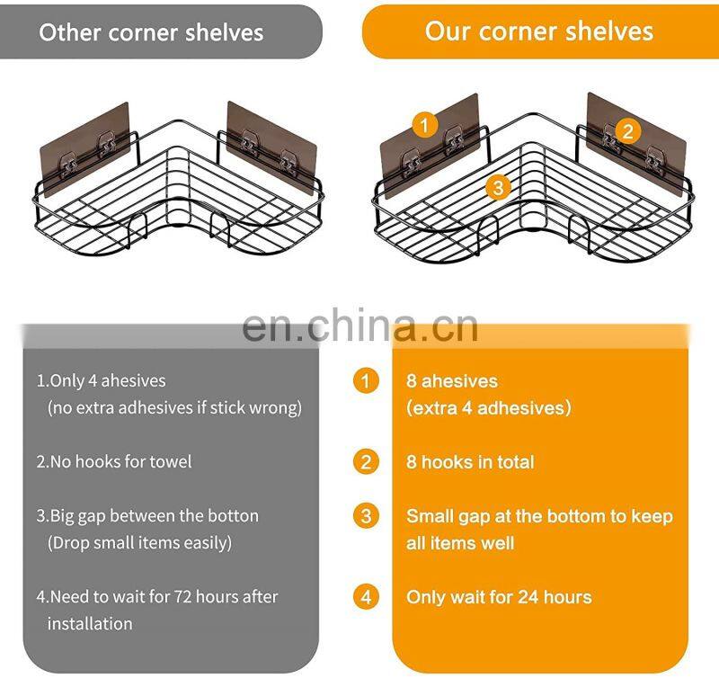 Home > Products > Bath Storage > Corner Shower Caddy Bathroom Shelf With 8 Pack Powerful Adhesive Hooks