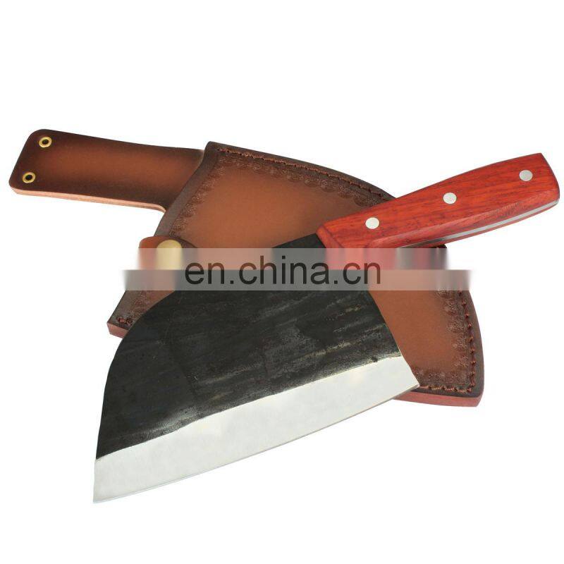 Hand Forged 6 Inch Chef Meat Cleaver Knife Leather Sheath Outdoor Butcher Chopper Boning Knife
