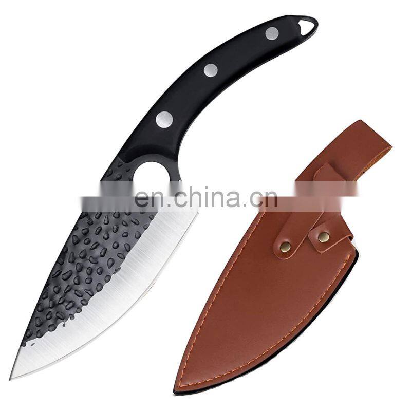Professional Boning Knife High Carbon Steel Hammered Butcher Knife Meat Cleaver With Leather Sheath