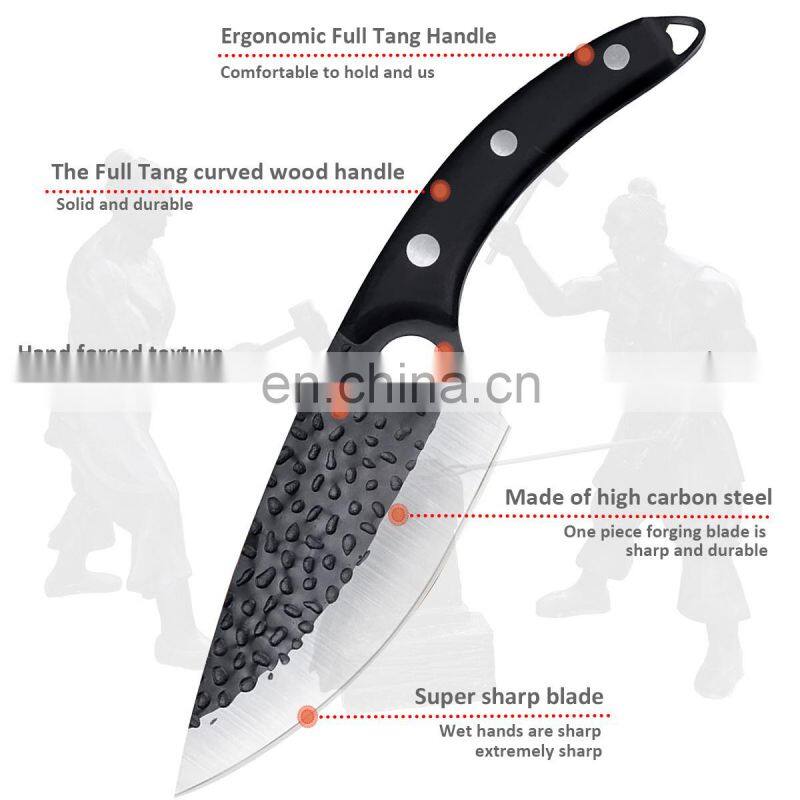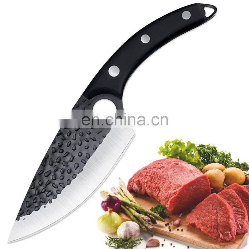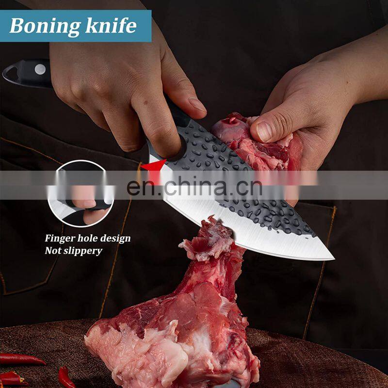Forged Hammer Pattern Viking Stainless Steel Hand-made Forged Hammered Boning Knife Outdoor Fish-killing Knife Butcher Knife Set
