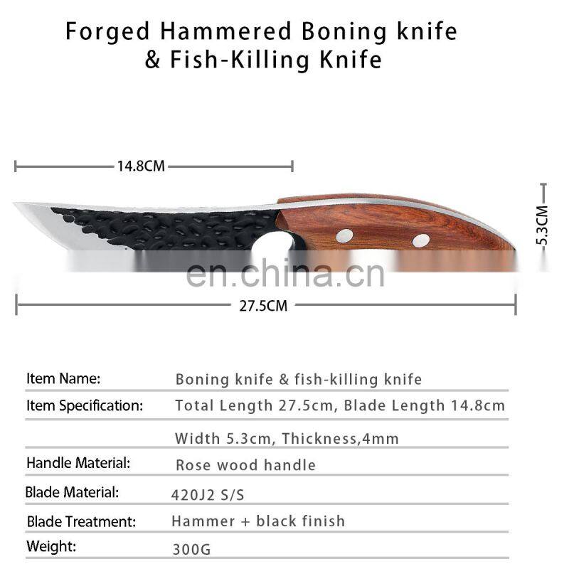 Forged Hammer Pattern Viking Stainless Steel Hand-made Forged Hammered Boning Knife Outdoor Fish-killing Knife Butcher Knife Set