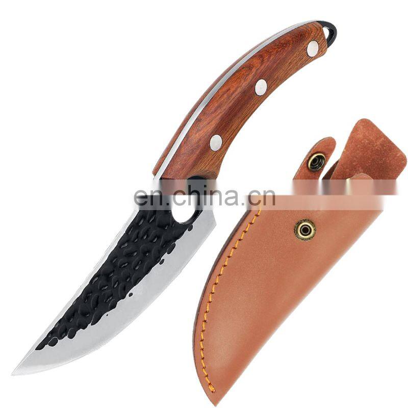 Professional Boning Knife High Carbon Steel Hammered Butcher Knife Meat Cleaver With Leather Sheath