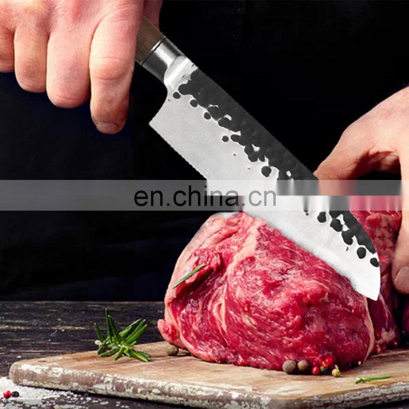 Forged Kitchen Knife Hammered Stainless Steel Cleaver Knife With Double Steel Head Santoku Knife