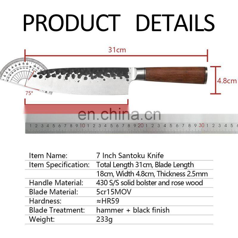 Product Name | Forged kitchen knife hammered stainless steel cleaver knife with double steel head Santoku Knife |