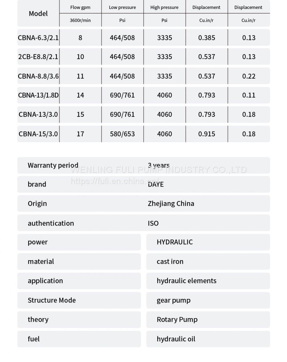 Low Noise Agricuture Hydraulic Pump Log Splitter Pump for Wooden Machinery 11gpm CBNA-8.8/3.6