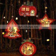 LED Christmas Tree Star Car Wooden Pendants Ornaments Xmas DIY Wood Crafts Kids Gift for Home Christmas Party Decorations