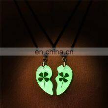 Clover Luminous Couple Necklace 2pcs Heart Shape Pendant Necklace Glowing In The Dark Lovers Jewelry Rope Long Necklace