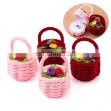 Cute Flower Basket Velvet Wedding Engagement Ring Box Gift Box Holder for Earrings Necklace Display Jewelry Case