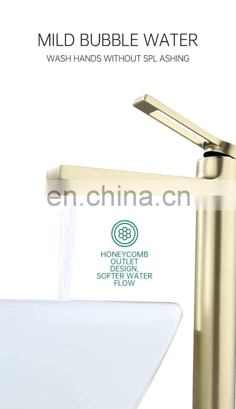 High Quality Brushed Gold Long Body Wash Faucet Basin Taps Single Lever Faucet