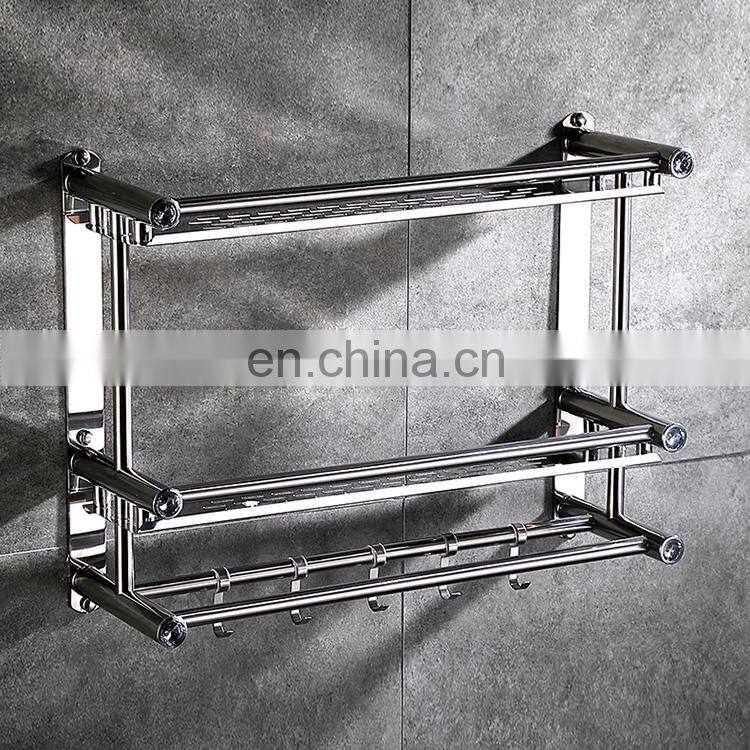 Wholesale Double Towel Bar Towel Rack With Hook Bathroom Rack Bathroom Shelf Stainless Steel Hanging Rack Rbathroom Accessories