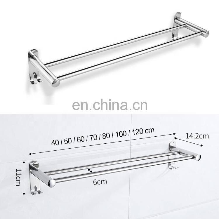 Wholesale double towel bar towel rack with hook bathroom rack bathroom shelf Stainless Steel Hanging Rack rbathroom accessories