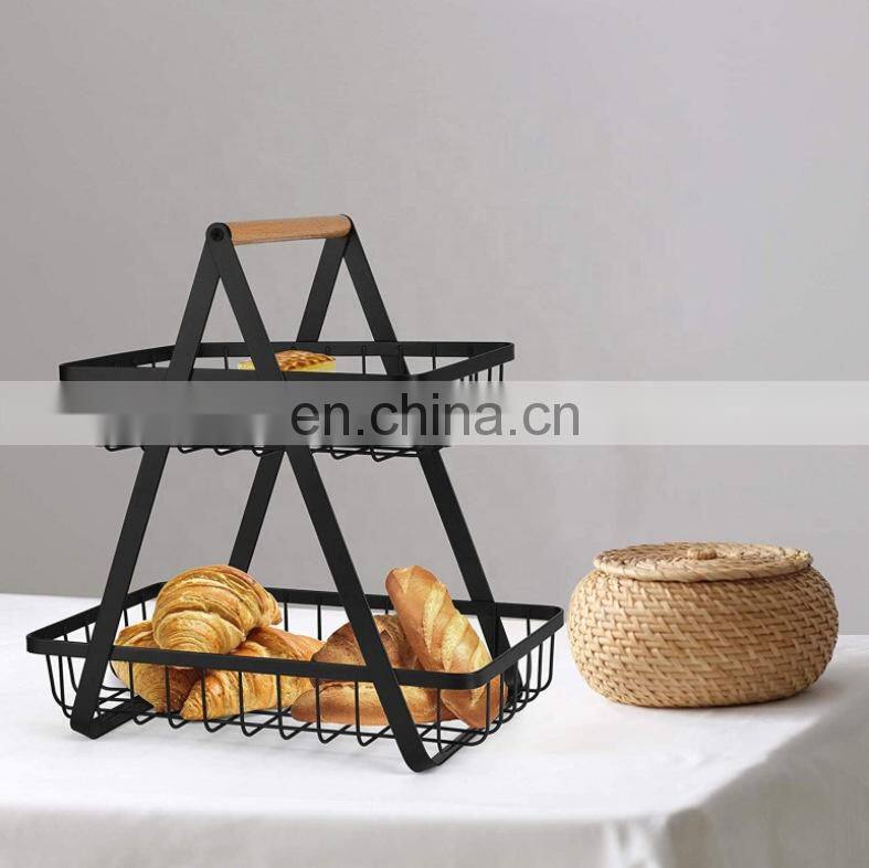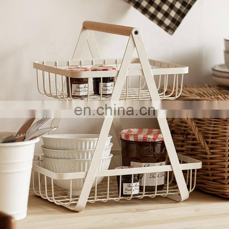Nordic 2/3 Tier Metal Water Hyacinth Fruit Basket Bread Storage Baskets Kitchen Vegetable Drain Basket Kitchen Storage
