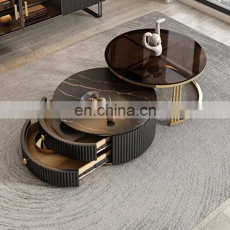 Luxury Coffee Tables Living Room Round Coffee Table Modern Apartment Multifunction Coffee Table Set Wood