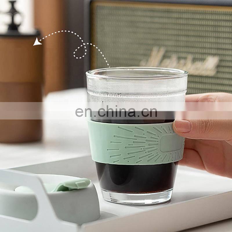 Portable Glass Mugs Coffee 350 ML Coffee Cup Swig Mug Travel Coffee Mug Silicone With Lid