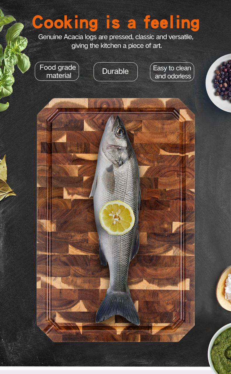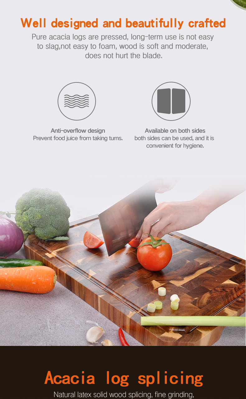 Home > Products > Cutting Board > End Grain Food Meat Fruits Acacia Wooden Chopping Boards With Juice Groove Cutting Board