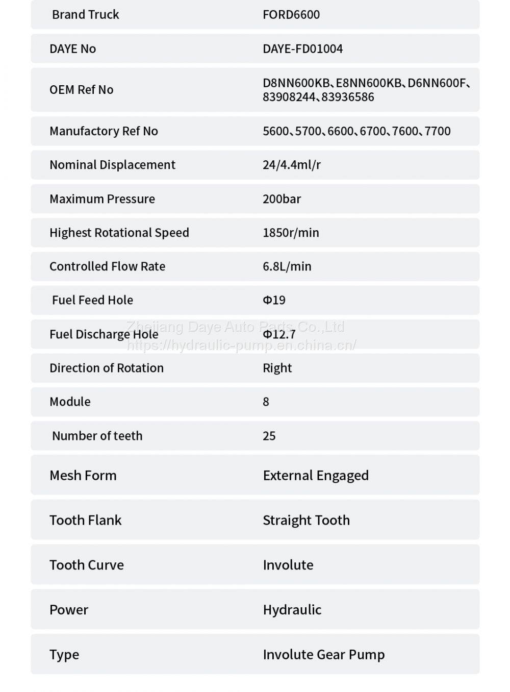 Agricuture Tractor Hydraulic Gear Pump for Ford 6600 5600 5700 D8NN600KB E8NN600KB D6NN600F 83908244 83936586