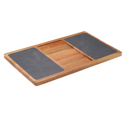 Custom Acacia Wood and Black Slate Cheese Board Kitchen Serving Food Fruit Vegetable Meat Cutting Board