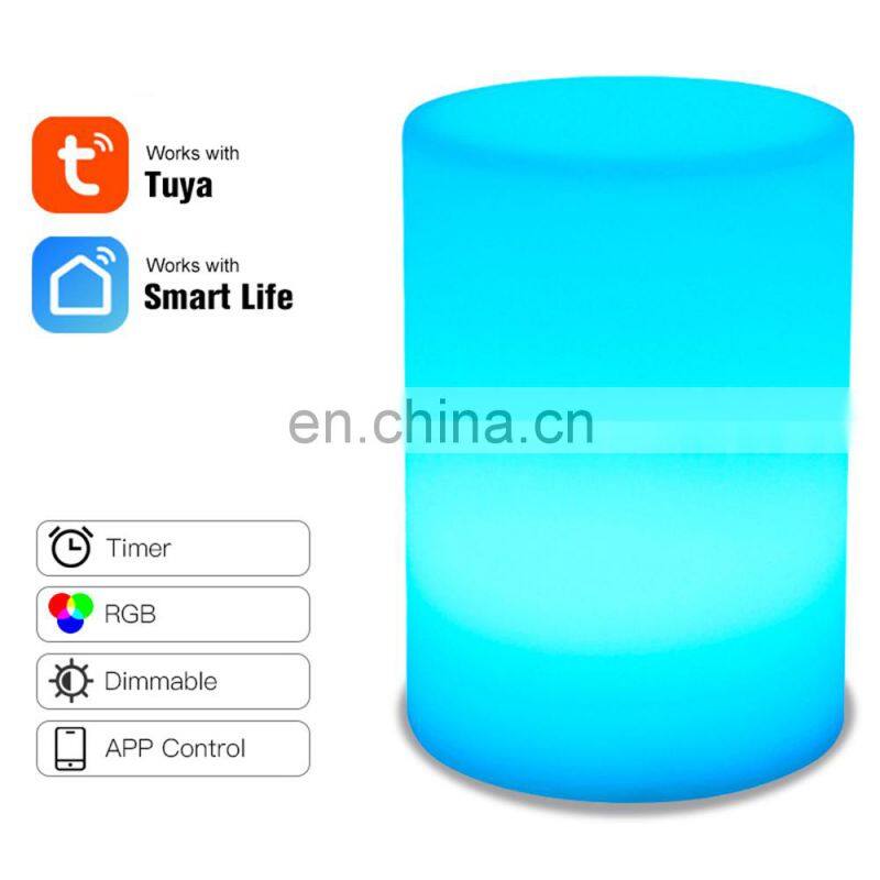 Cylinder Rechargeable Custom Tuya APP Control Smart Living Room Restaurant Cordless Led Table Night Light Lamp