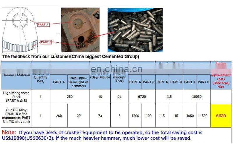 4.The Advantage Of Economic Cost(common Hammer With High Manganese Steel VS Tic Hammer With Our Tic Rod