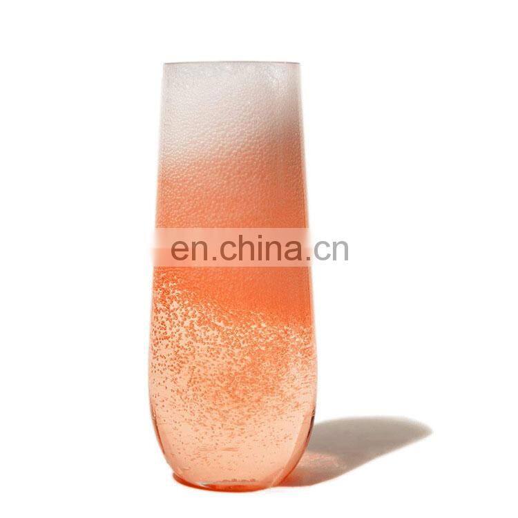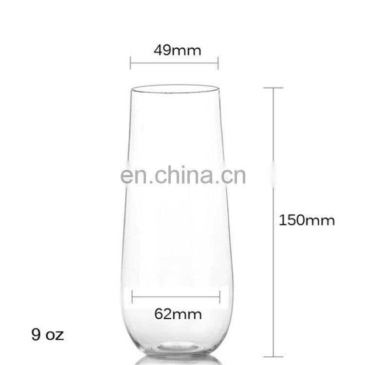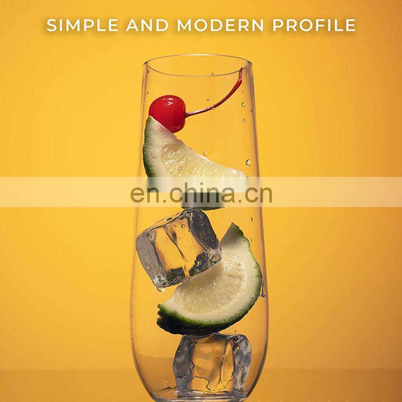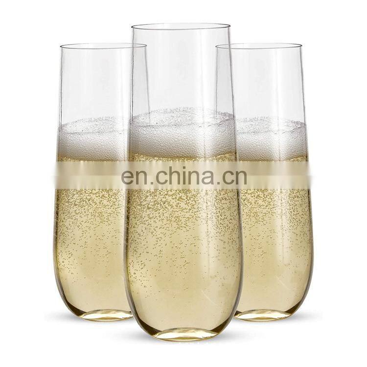 Home > Products > Barware > Amazing Transparent PET Logo Wine Wedding Customize Flute Stemless Plastic Glasses Champagne