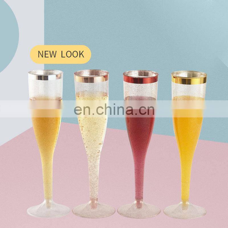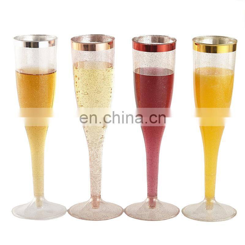 Plastic Champagne Flutes Gold Glitter Plastic Toasting Glasses Disposable Wedding Party Cocktail Cups