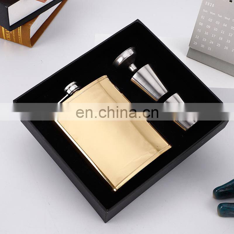 Home > Products > Barware > Luxury Gold Logo 8oz Bottle Stylish Stainless Steel Shot Glass Whiskey Sublimation Box Gift Hip Flask Set