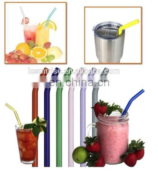 Best Selling Reusable Borosilicate Straight and Bent Color Glass Straws With Cleaning Brush