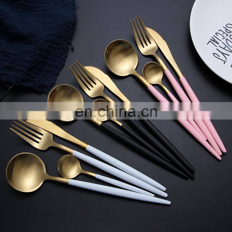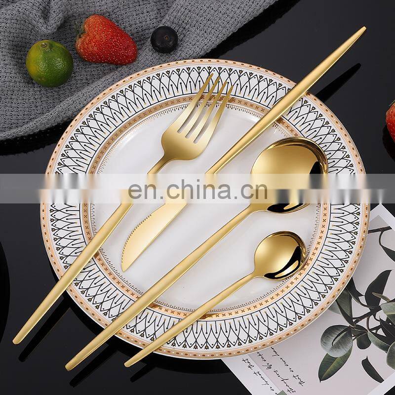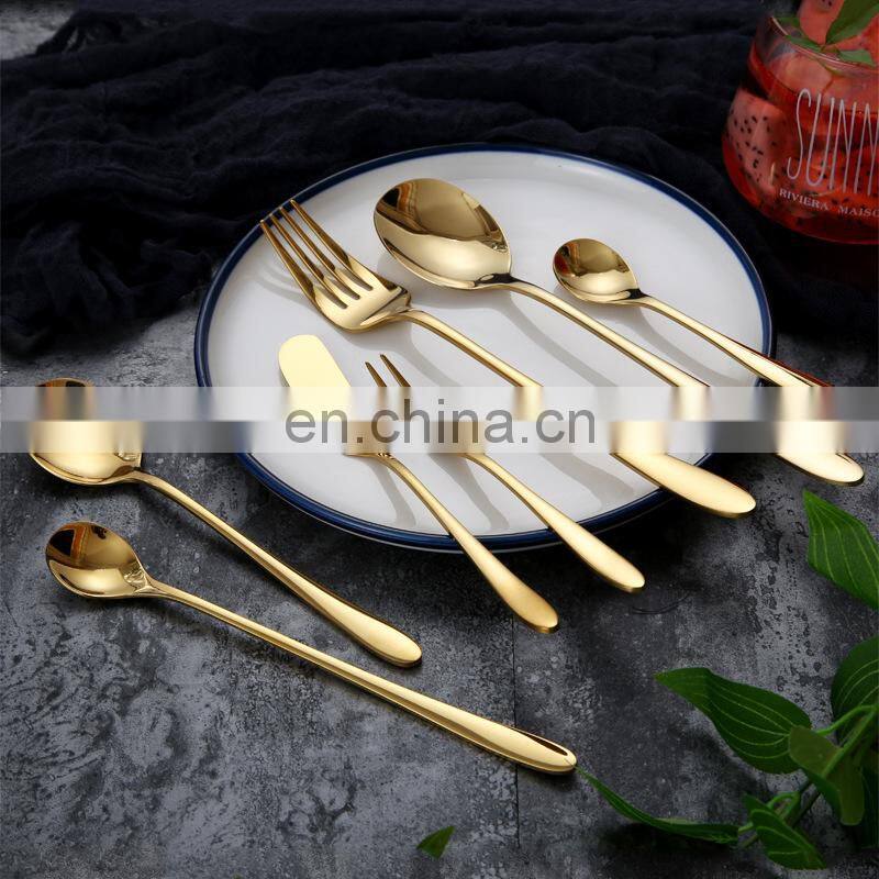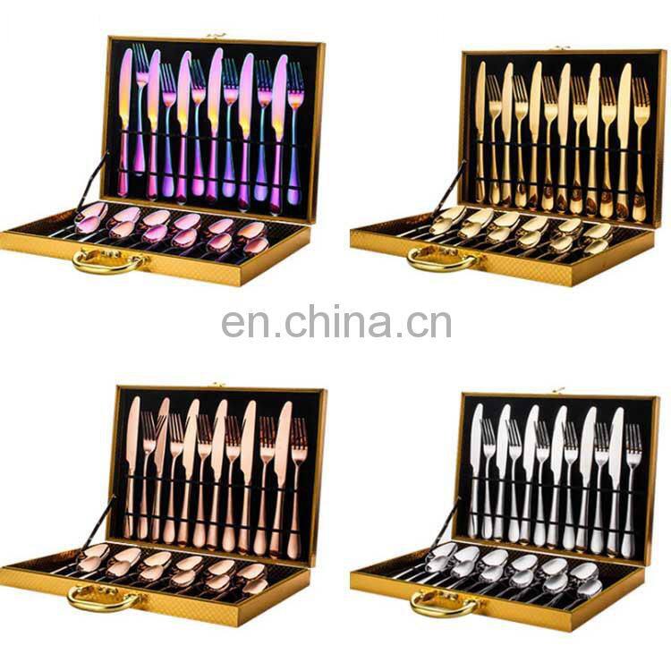 Stainless Steel 24 Piece Plated Golden Hotel Cutlery Wedding Restaurant Homefelt Flatware Sets