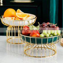 European Nordic Creative Luxury Decorated Wire Veg Mesh Gift Stand Gold Black Countertop Fruit Wash Basket