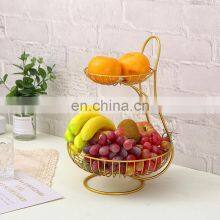 Wholesale Display Fruit Iron Storage Kitchen Bowl Metal 2 Wire Tier Fruit Basket Golden