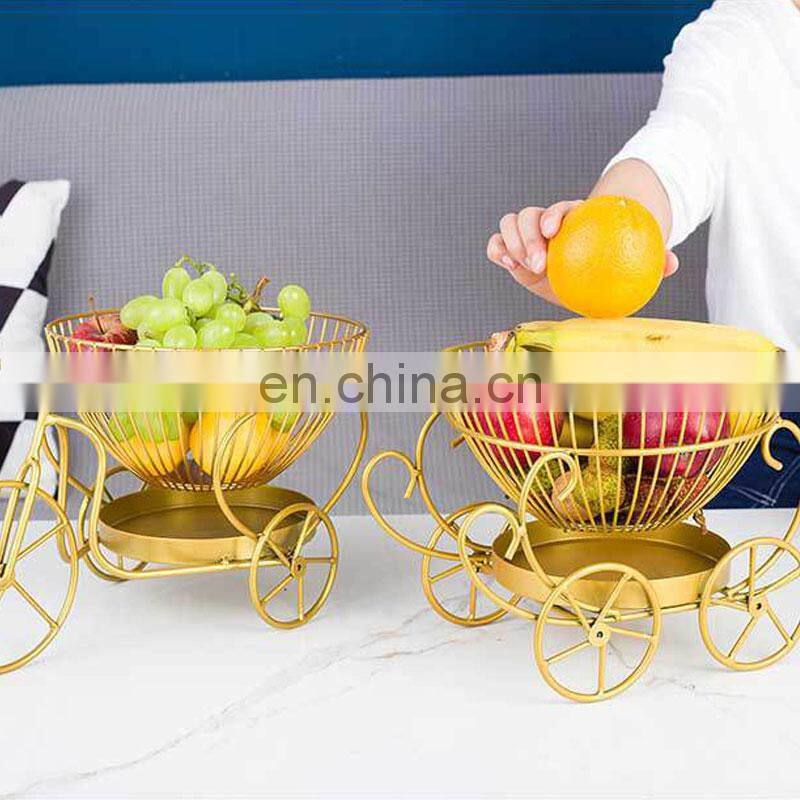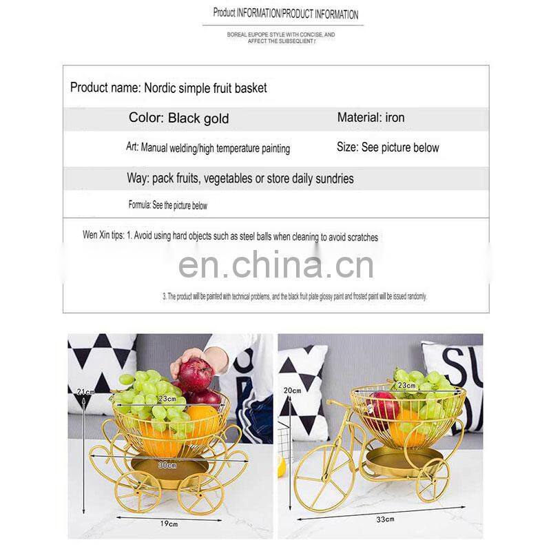 Tricycle Large Gold Black Vegetable Storage Metal Wire Dry Mesh Stand Bowl Decorative Fruit Display Basket