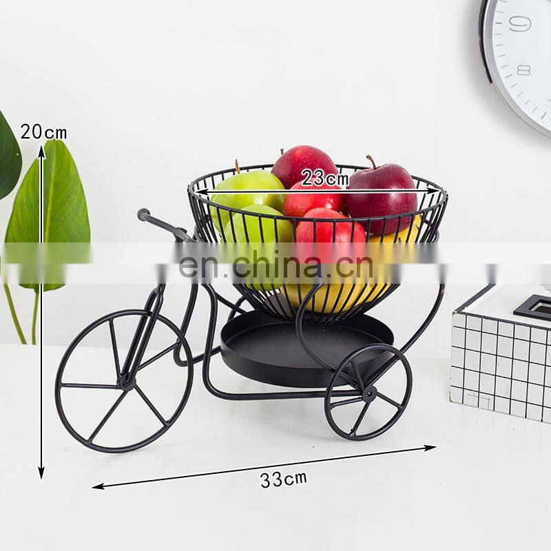 Home > Products > Home Storage & Organization > Tricycle Large Gold Black Vegetable Storage Metal Wire Dry Mesh Stand Bowl Decorative Fruit Display Basket