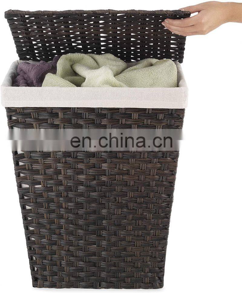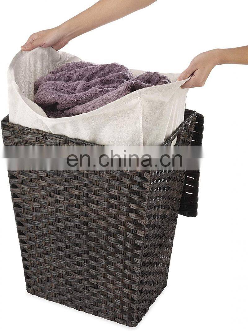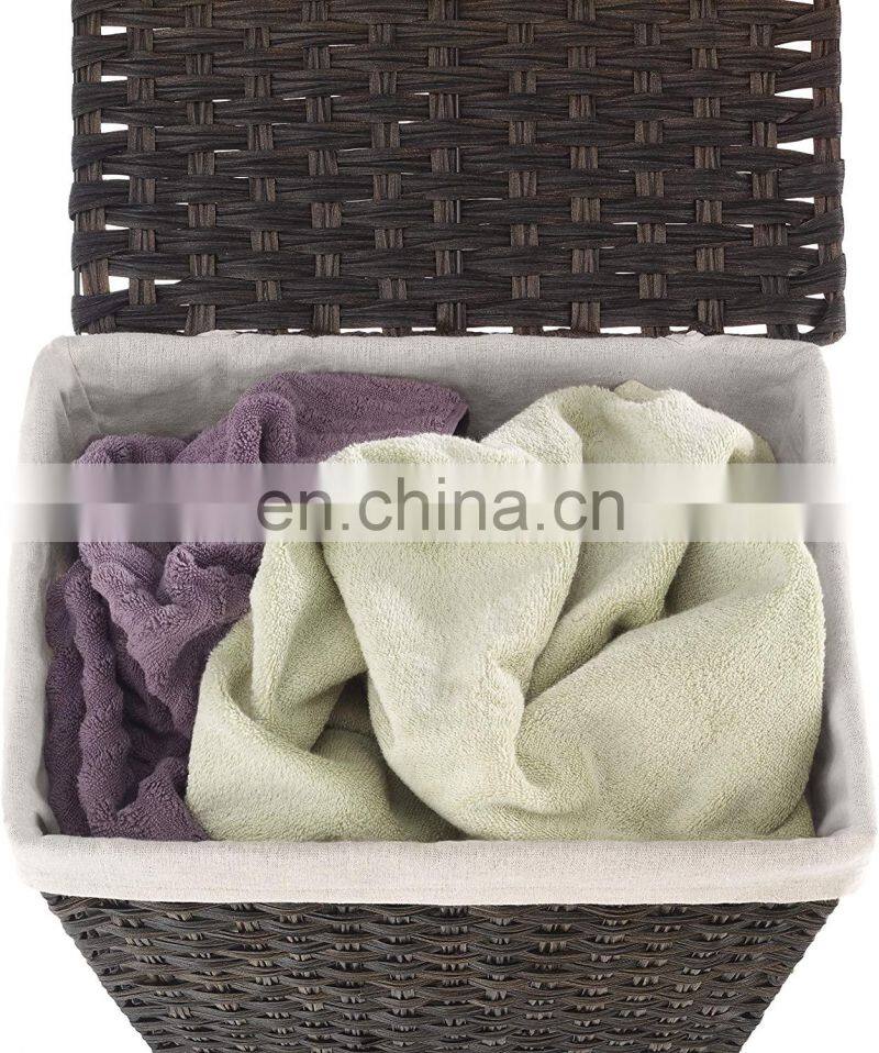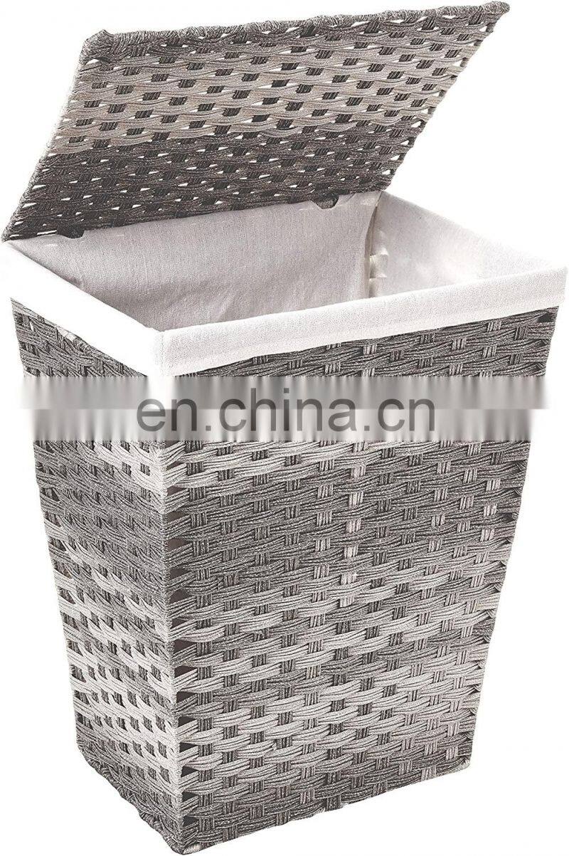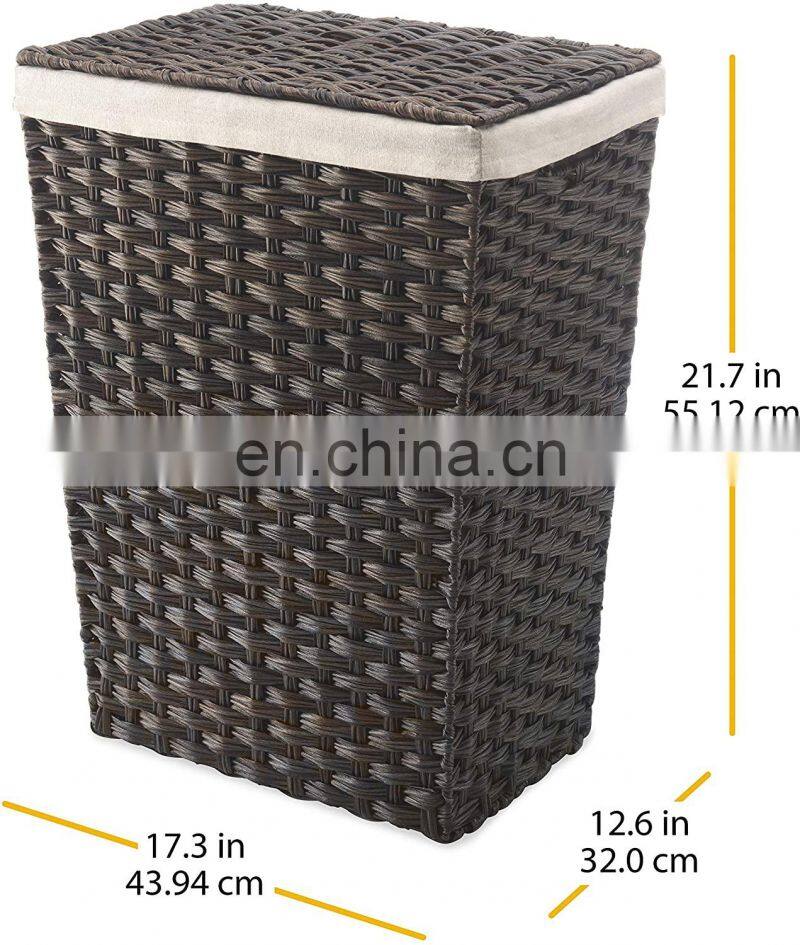Large Capacity With Handle and Lid Hand-woven Plastic Rattan Storage Basket Bathroom Laundry Storage Bucket