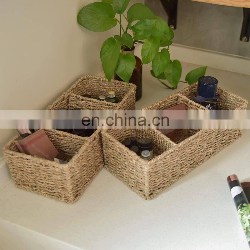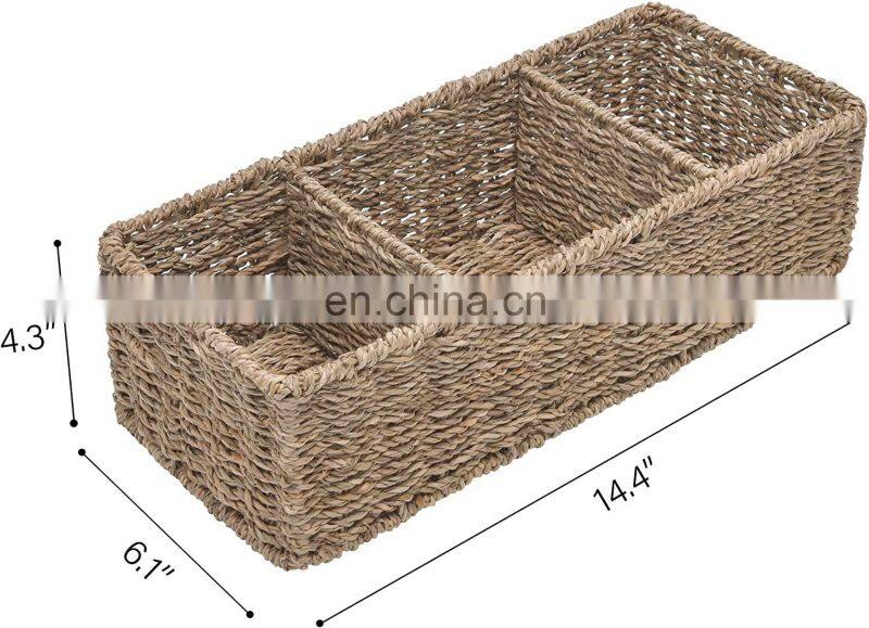 Home > Products > Rattan Product > 3-Section Wicker Baskets for Shelves, Bathroom Room Small Items Storage Basket,Hand-Woven Seagrass Storage Baskets