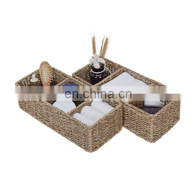 Wholesale Rectangle Woven Rattan Seagrass Basket Hand-Woven Storage Baskets for Bedroom and Bathroom