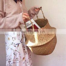 HBK Handmade Foldable Nature Plant Toys Kid Flower Seagrass Laundry Belly Basket With Handle