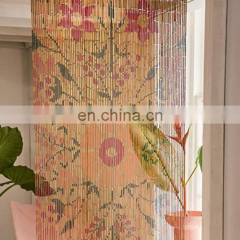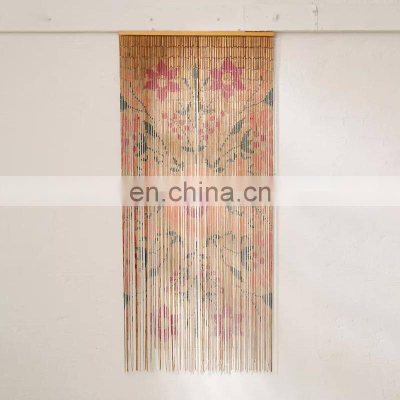New Selling Floral Bloom Oversized Bamboo Beaded Door Curtain Cheap Beaded Painted Door Curtain Wholesale