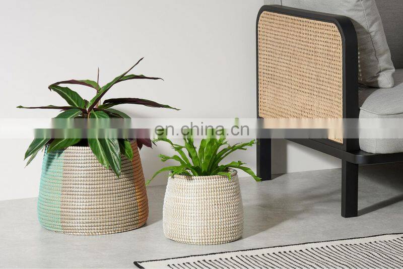 Home > Products > Decor Items > Supplier Set of 2 Seagrass Planters With Color Plastic String Storage Basket Plant Holder Storage Basket Wholesale