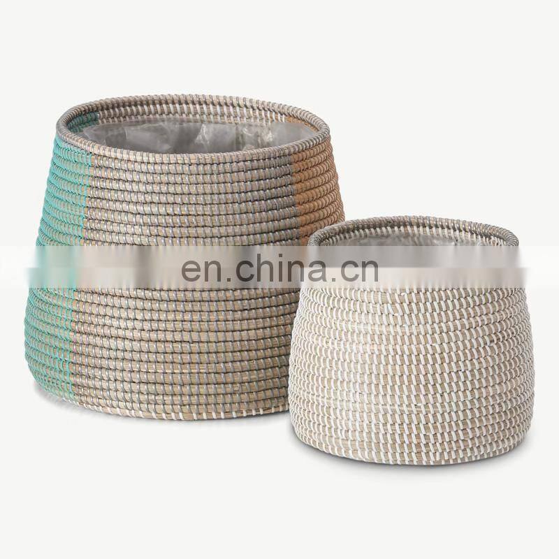 Supplier Set of 2 Seagrass Planters With Color Plastic String Storage Basket Plant Holder Storage Basket Wholesale